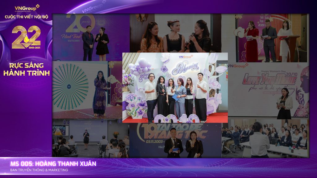 Bài dự thi Cuộc thi viết nội bộ VNGroup 22 năm – Rực sáng hành trình của thí sinh MS005 – Hoàng Thanh Xuân – Ban Truyền thông & Marketing. Mời tất cả mọi người nhiệt tình tương tác ủng hộ!