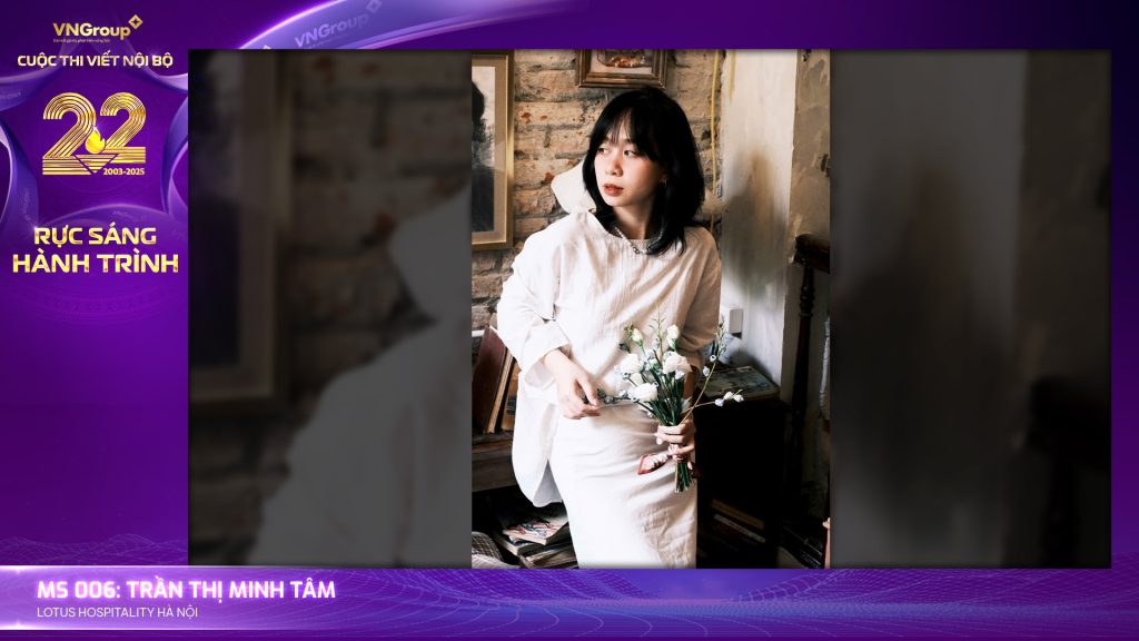Bài dự thi Cuộc thi viết nội bộ VNGroup 22 năm – Rực sáng hành trình của thí sinh MS006 – Trần Thị Minh Tâm – Lotus Hospitality. Mời tất cả mọi người nhiệt tình tương tác ủng hộ!