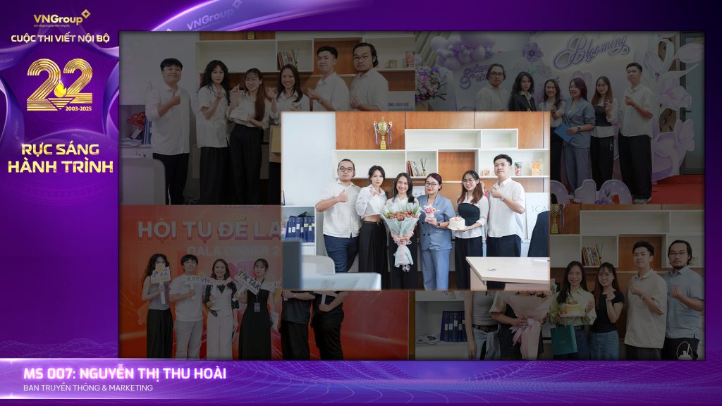 Bài dự thi Cuộc thi viết nội bộ VNGroup 22 năm – Rực sáng hành trình của thí sinh MS007 – Nguyễn Thị Thu Hoài – Ban Truyền thông & Marketing. Mời tất cả mọi người nhiệt tình tương tác ủng hộ!