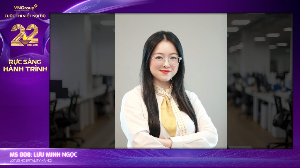 Bài dự thi Cuộc thi viết nội bộ VNGroup 22 năm – Rực sáng hành trình của thí sinh MS008 – Lưu Minh Ngọc – Lotus Hospitality Hà Nội. Mời tất cả mọi người nhiệt tình tương tác ủng hộ!